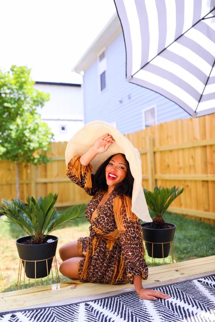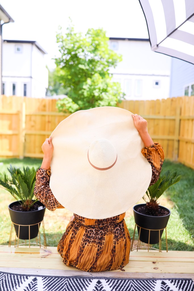 Summer days will turn to Fall chill sessions on the patio before we know it, and Mr.Sweet and I wanted to be ready to bask in the sun in a beautiful oasis. Last year, during the height of the pandemic, we centered our backyard around a small pool setup. This year, we’ve taken down the small pool and opened up the deck! Yes, we did a little construction and built a fence around our small city oasis to get more privacy. We switched out the furniture to a more bohemian, luxury feel, and now we’re ready to enjoy the days here. With #BabySweet on the way, I imagine next summer sitting on the stairs to the deck watching my little human roll around in the grass, or perhaps we’ll even bring back a small pool. Either way, we are ready to hosts and make memories in this space. Our outdoor living room is all set. I’ve linked everything below for your reference. This entire patio encompasses affordable pieces that you can add to your home.