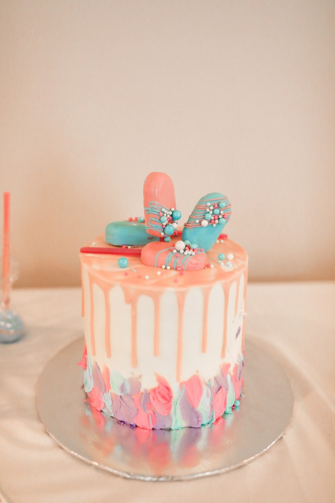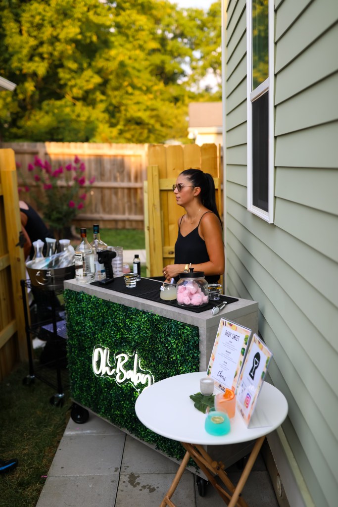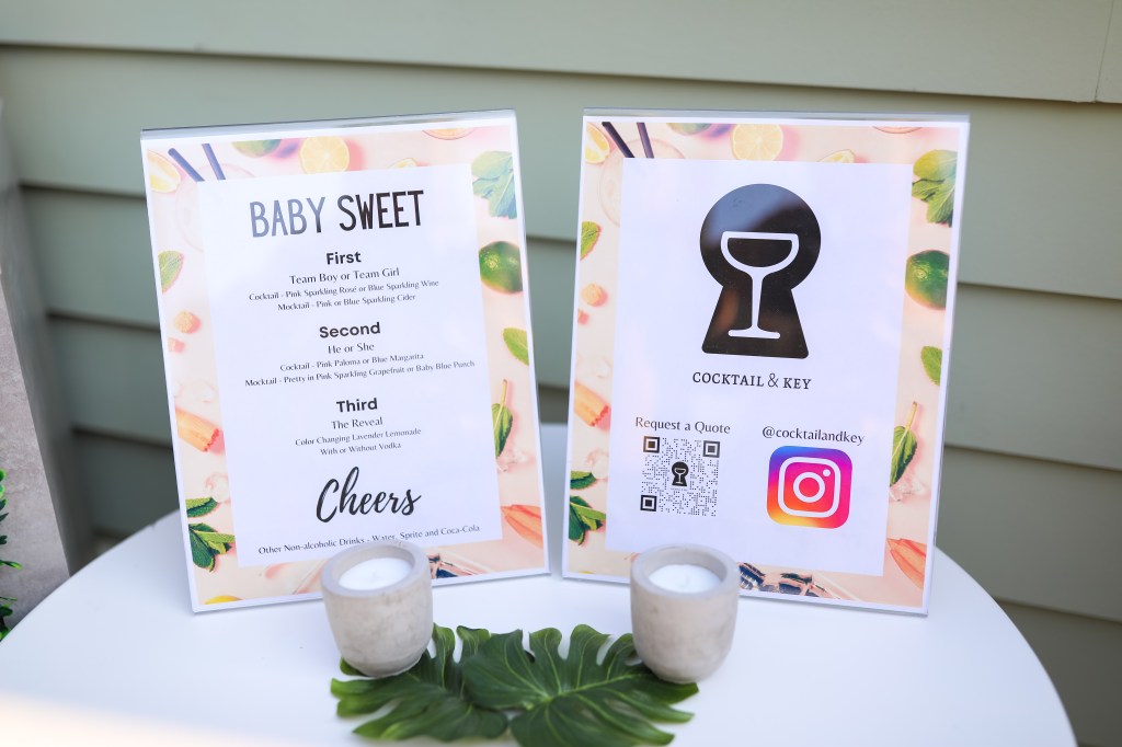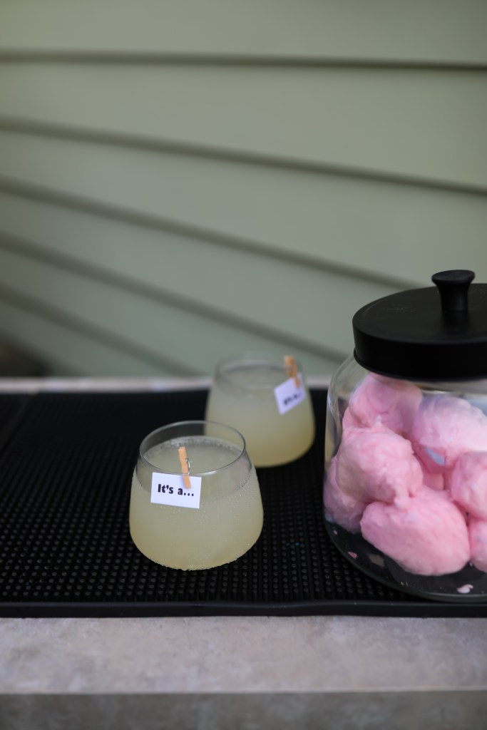 Then, we booked Cocktail and Key to provide guests with their gender deciding factor. They were able to choose from various mocktails and cocktails, all personalized for Baby Sweet’s gender reveal. The ornate cotton candy drinks were a hit with both kids and adults! After we learned that we would be welcoming a Baby Girl in December, Krystal designed a drink that would change pink! It was so delightful!