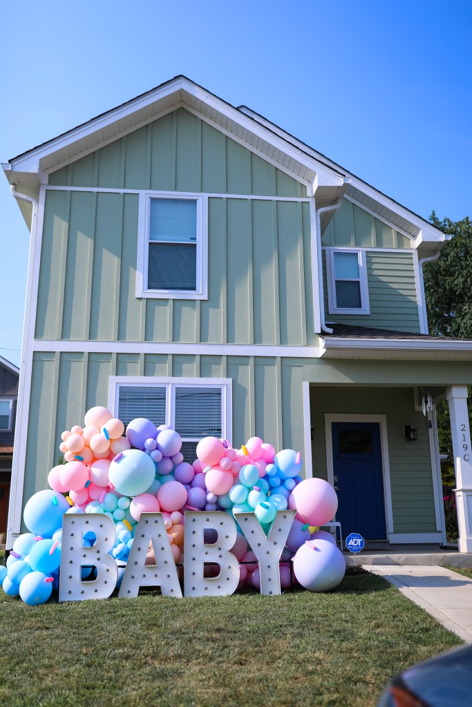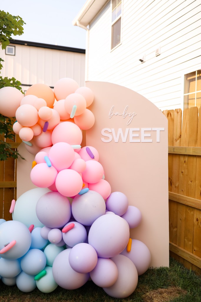 Then, we decided that we’d need a few enhancements to set the scenery! Magari Events designed all the balloon architecture. The designs coupled with Alphalit Nashville’s “SWEET” light” welcomed family and friends right on into the party! Margari Event’s also created an incredible backdrop for the backyard. If you do nothing else to set the tone of your party, you need balloons galore!