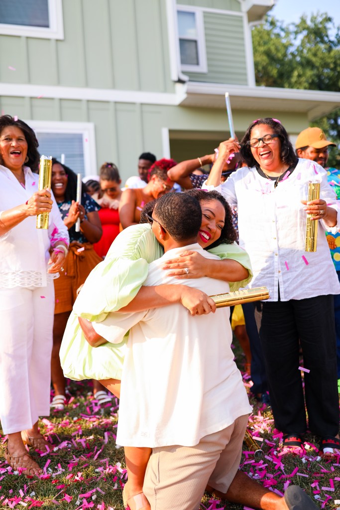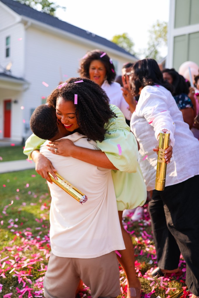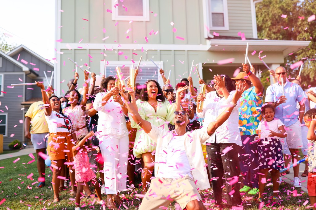 Learning the gender was a real treat! Since we’re living in a virtual world, we went live on IG and Facebook so that extended family and friends could be a part of the celebration. We gathered everyone in the front yard with poppers and smoke to learn the gender of Baby Sweet. Everyone was so excited as we counted down the moment until we found out about our girl! You can order yours here.