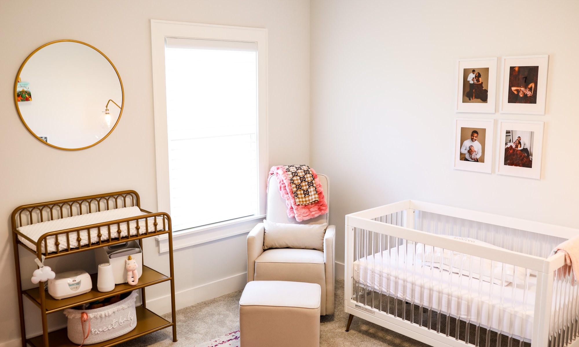 As for personal touches, I added a gallery wall to my daughters nursery. No murals of animals, but memories of her vibrant life will line the wall just behind her crib always reminding her to live and dream big. My husband and I have decided to do quarterly photoshoots to add to the wall. As you plan for your child’s nursery, choose sentimental value over just stuff. Toys and things add up over the weeks, months and years, make sure you’re taking up your child’s space with the right pieces.